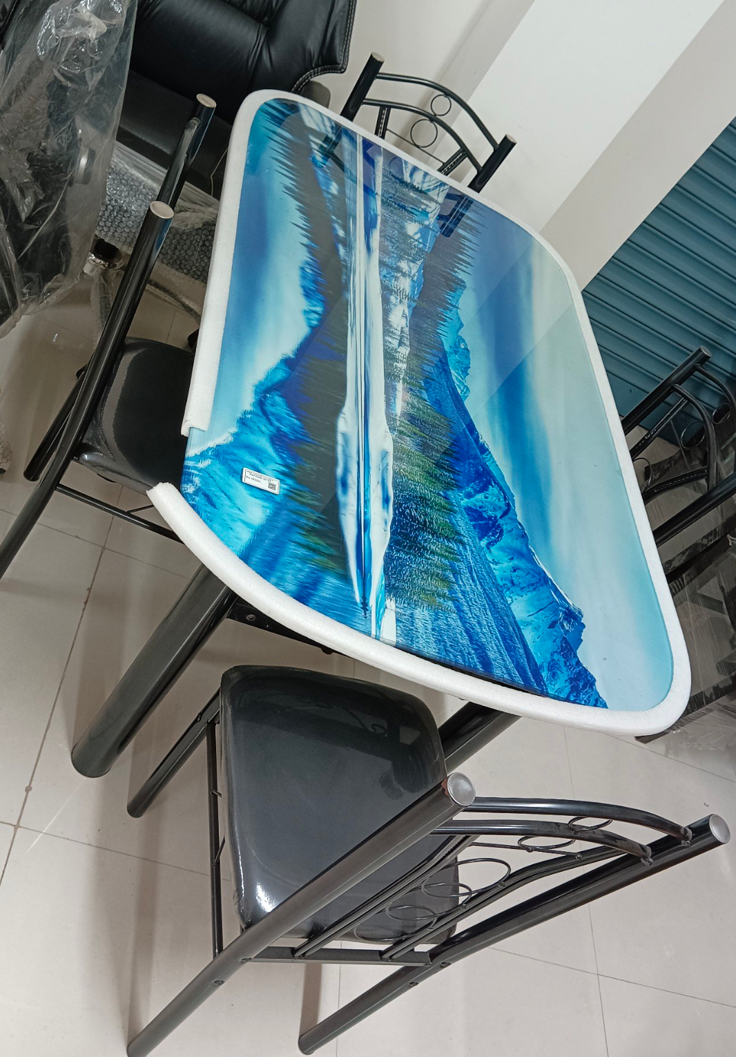 Modern 4-Seater Oval Glass Dining Table Set – Metal Frame with Chairs Included